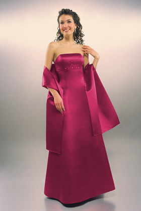 Princess line matte satin dress with optional shoestring straps. Boned bodice and fully lined. Fastens with a zip .